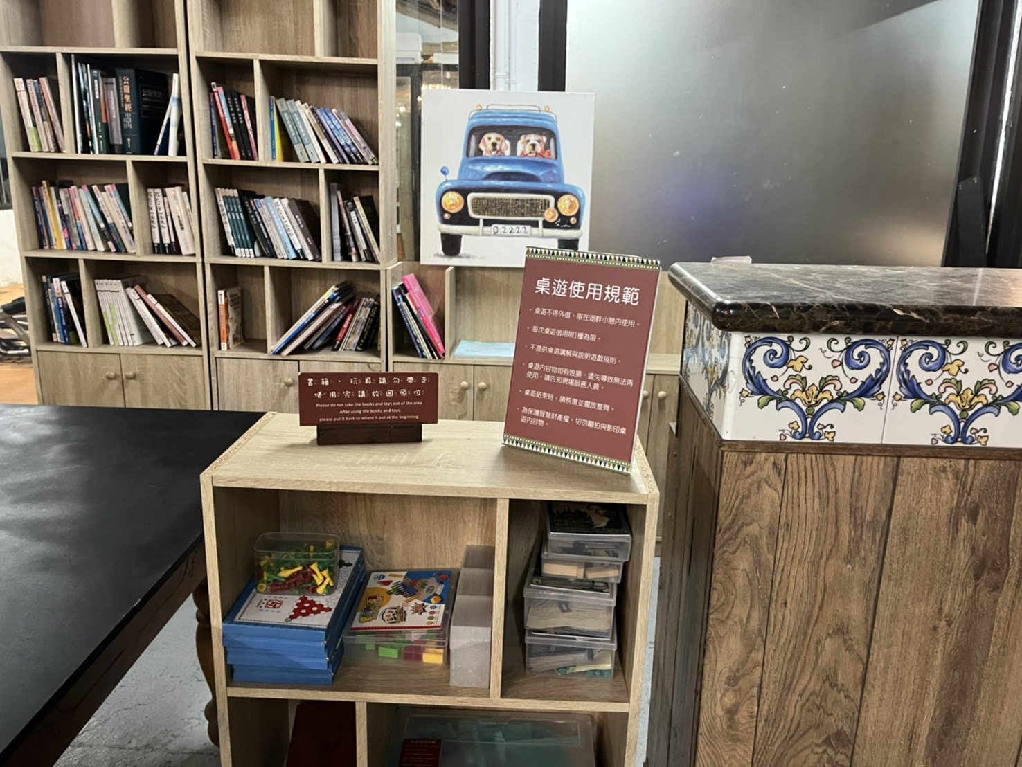 簡單的桌遊與圖書,讓小朋友打發時間。