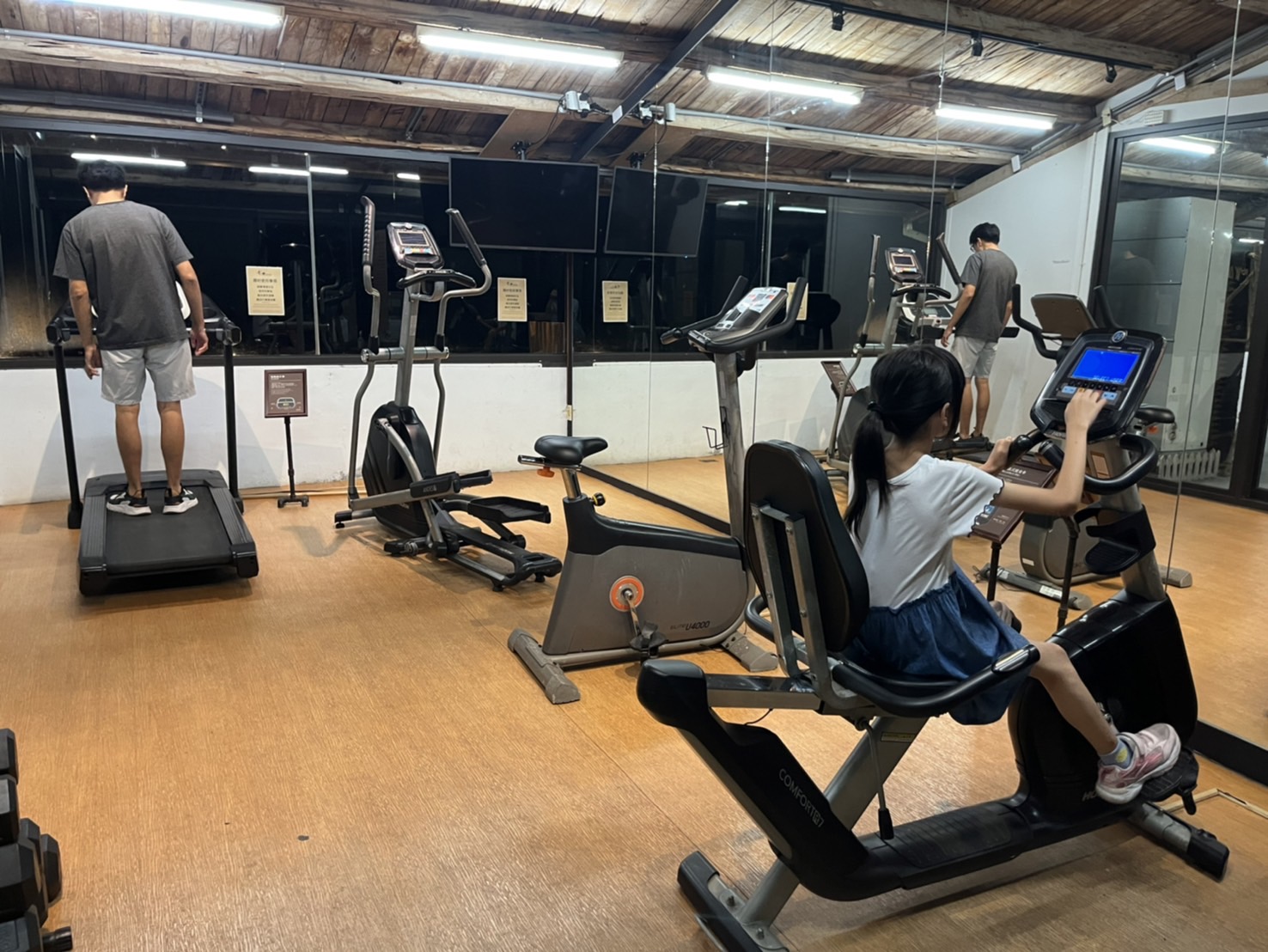 撞球間的旁邊便是健身房,話說苳已經到了對健身房比遊戲室有興趣的年紀了。