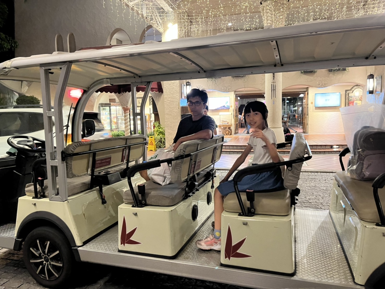 然後再坐著他們飯店的高爾夫接駁車,前往停車場拿行李進房間。