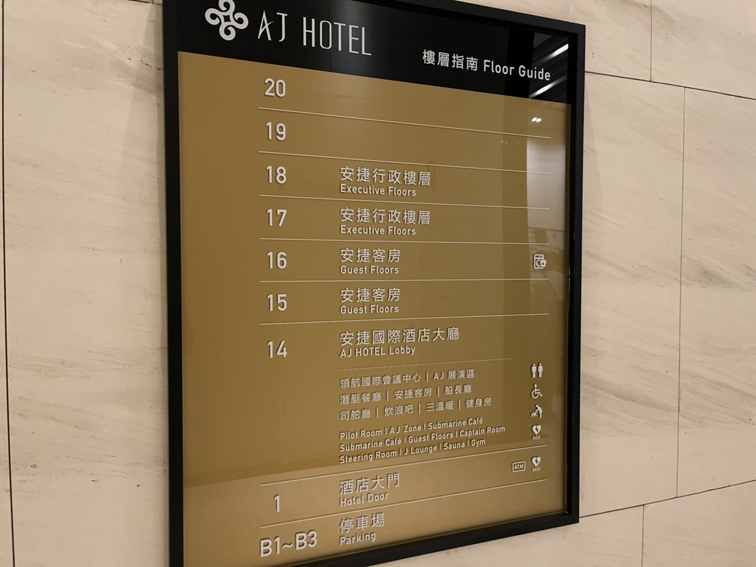 安捷國際酒店本身也是在大樓裡面,一樓有著大大的標示,
