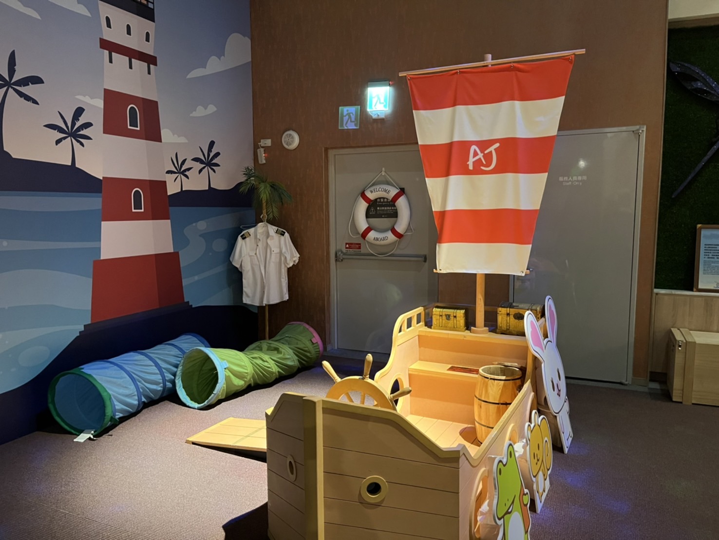 有一面可愛的磁鐵牆,可見到潛水艇的元素在其中。