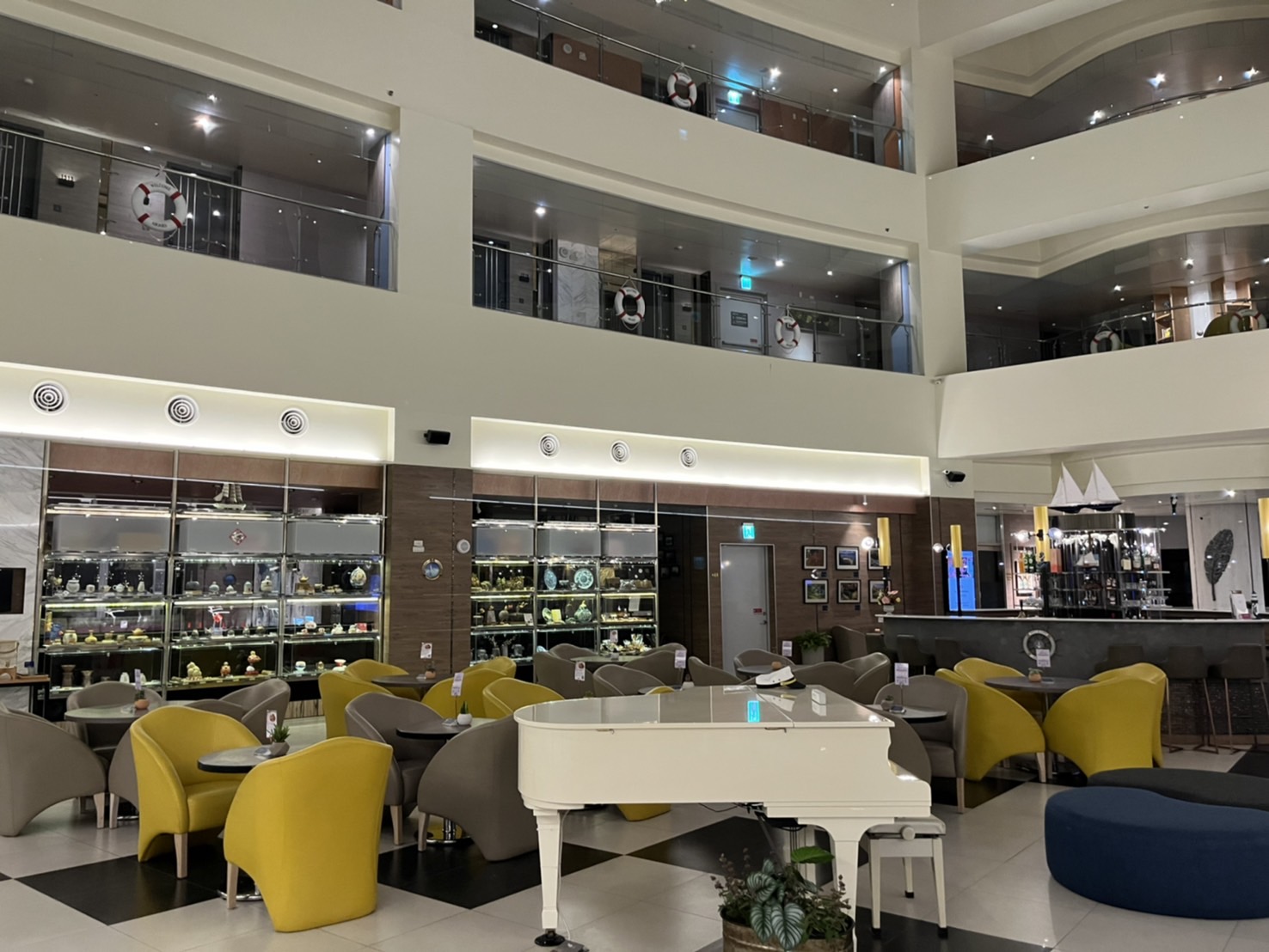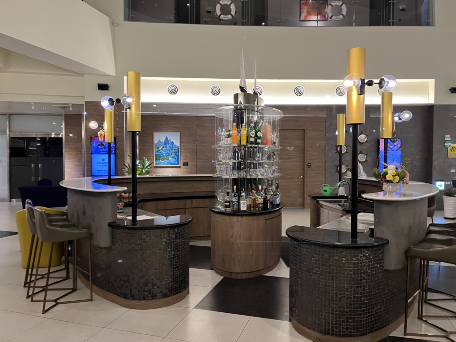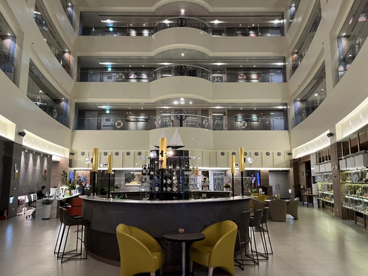 安捷國際酒店以潛水艇獨特造型為主題,能看見不少海洋與船隻的元素。