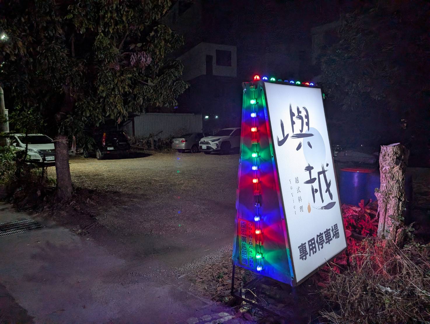 在餐廳旁邊的小路右轉進去不久,便會看到停車場指示牌了。