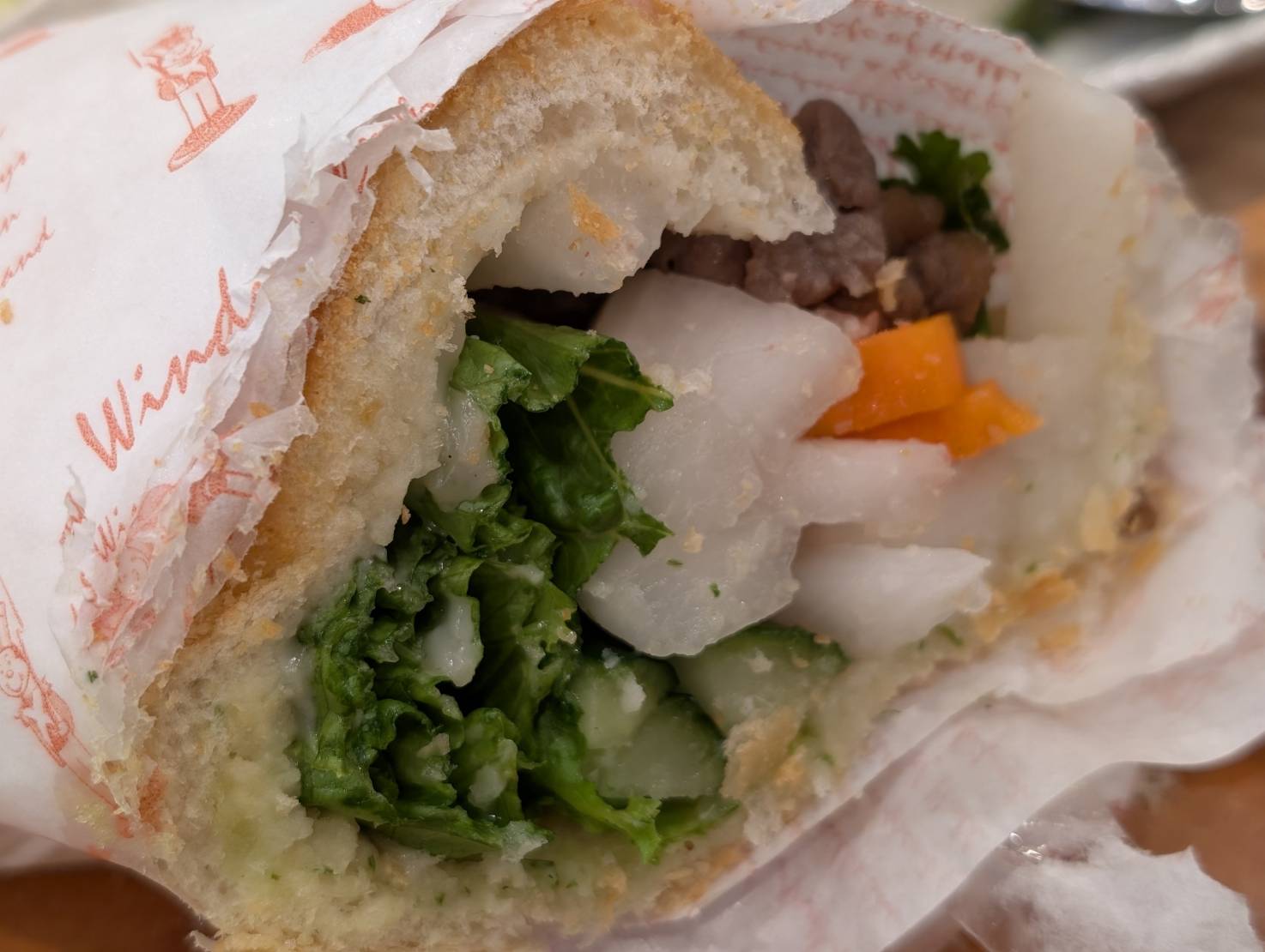 夾入醃製過的牛肉與多種配料,一口下去香氣層層堆疊。