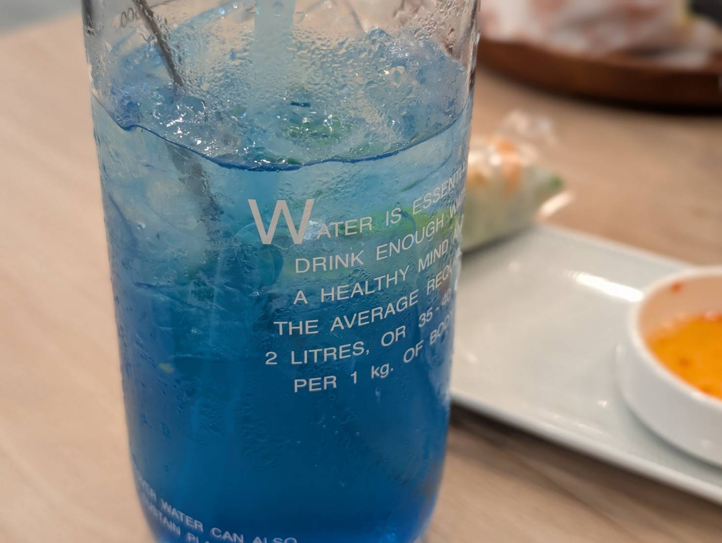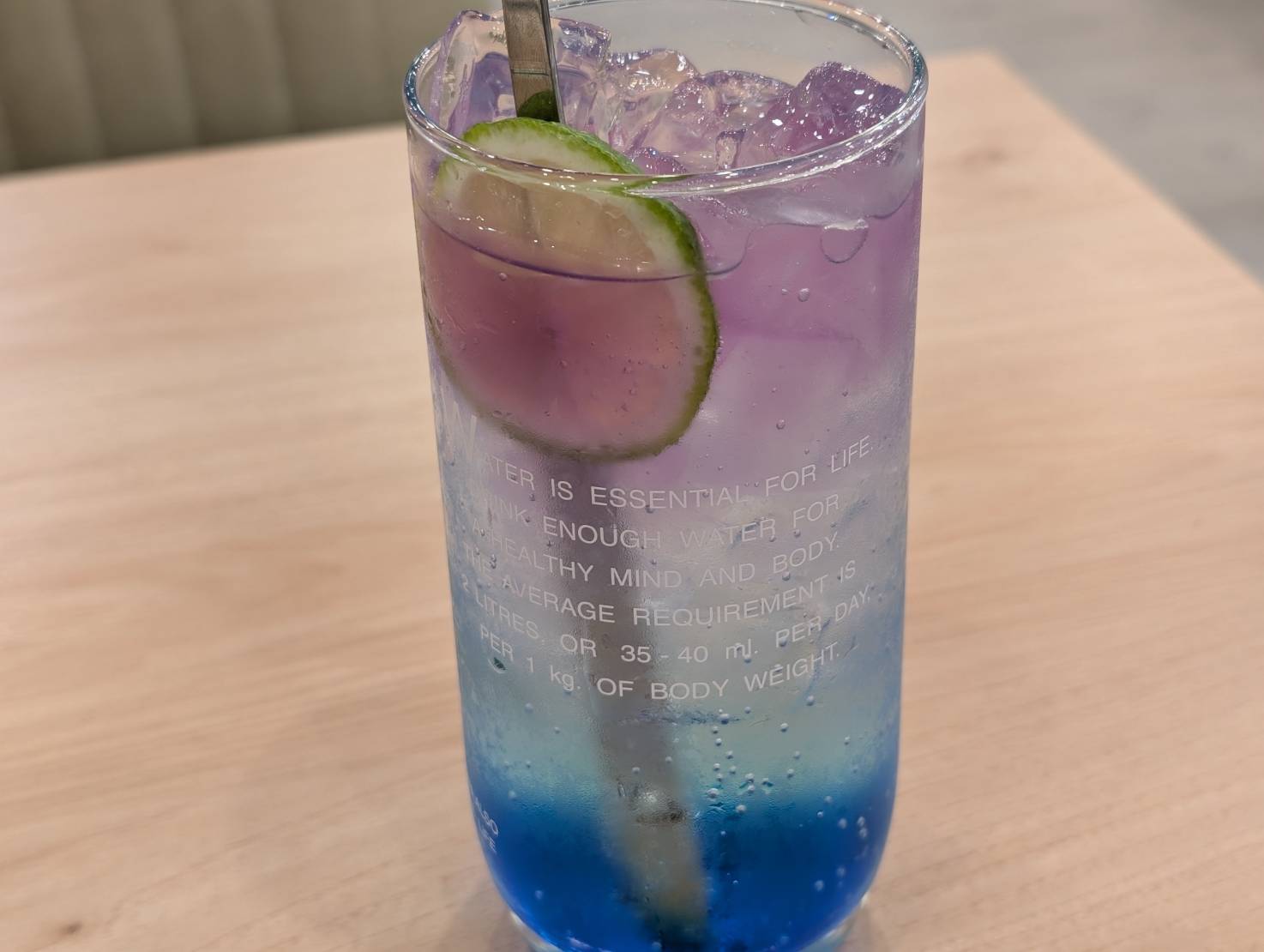以蝶豆花檸檬汁為基底,加入雪碧,