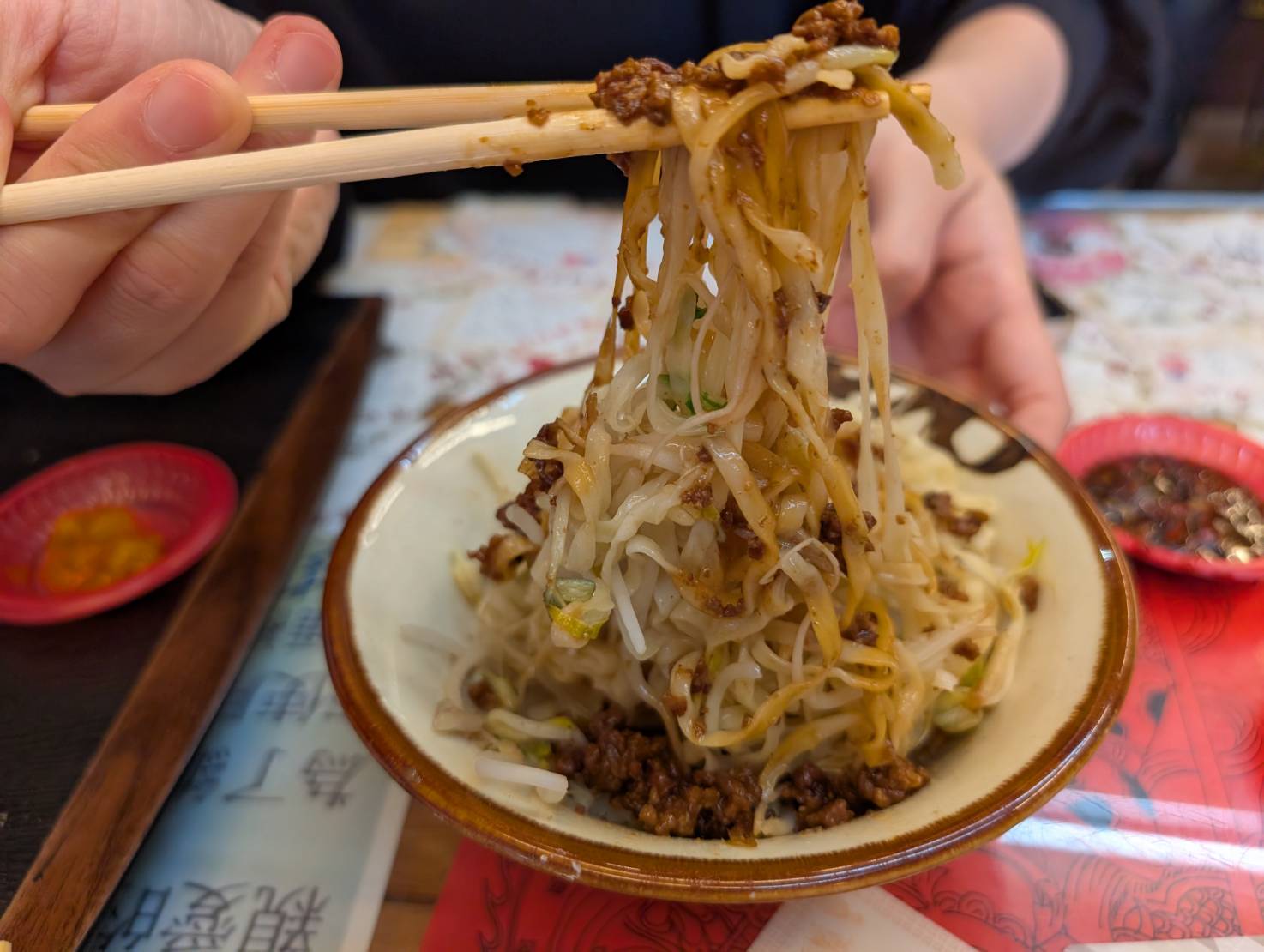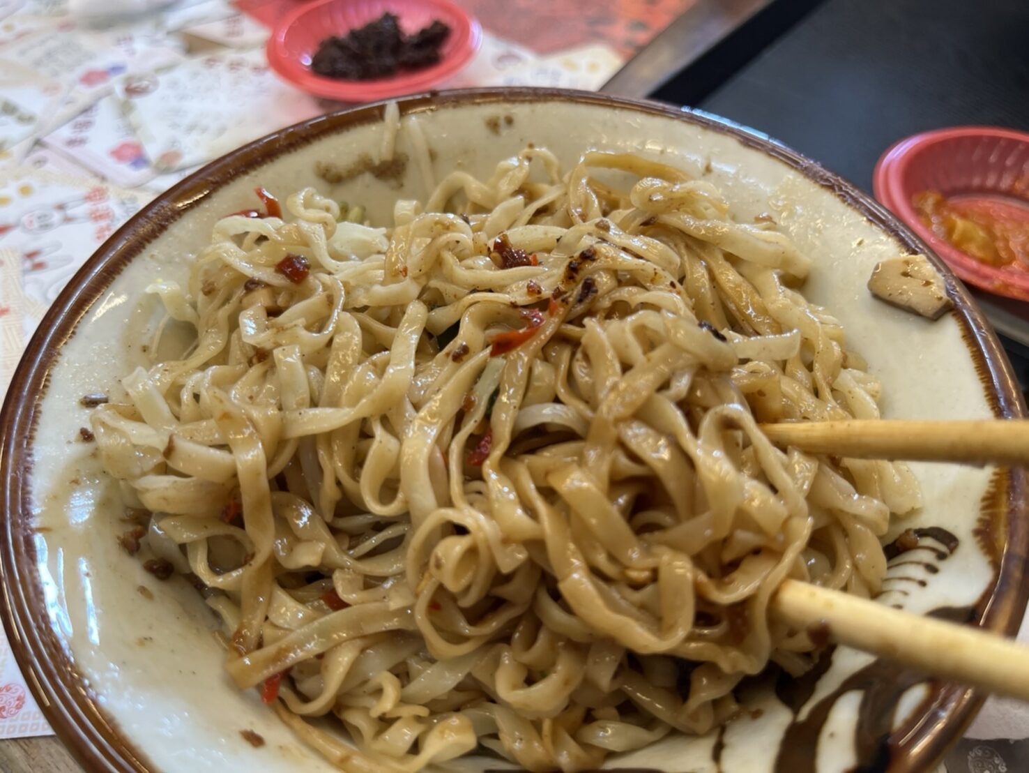 紅油炒手也是他們家必吃的品項,紅油香氣十足,又不會過辣。
