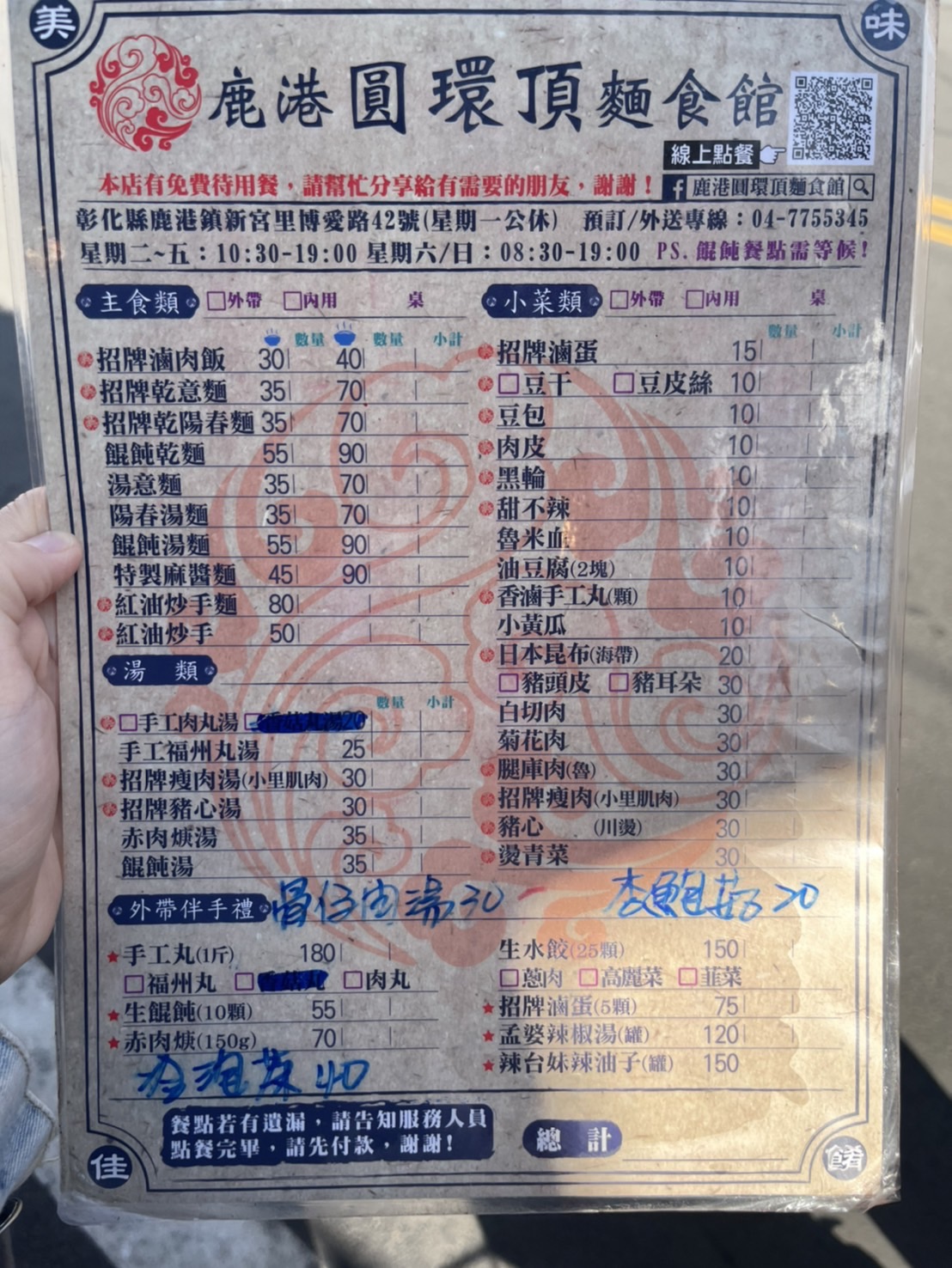 鹿港圓環頂麵食館 菜單