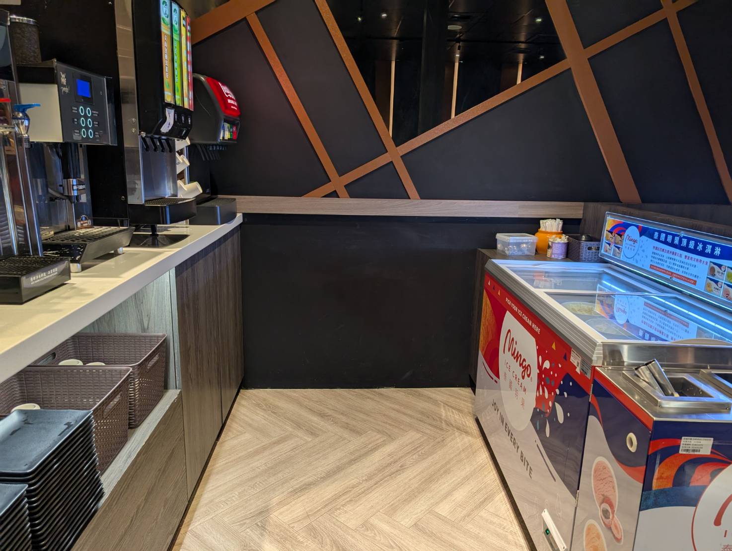 它的座位寬敞,附蔬菜、飲料自助吧吃到飽,