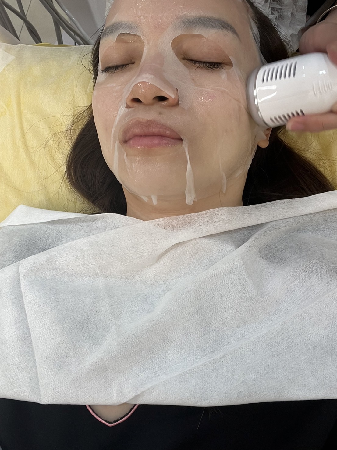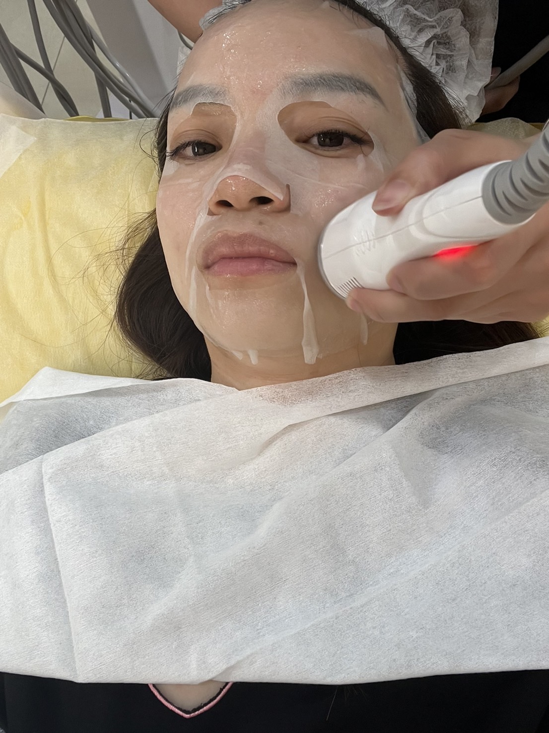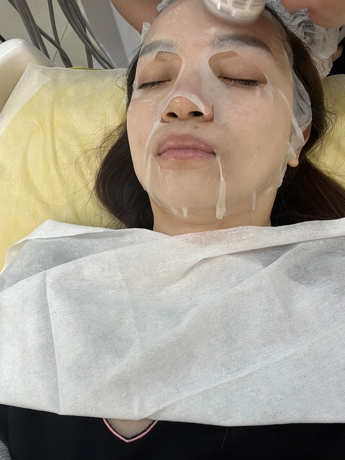 第一階段完成,美容師幫我敷上面膜,加強保濕及舒緩。