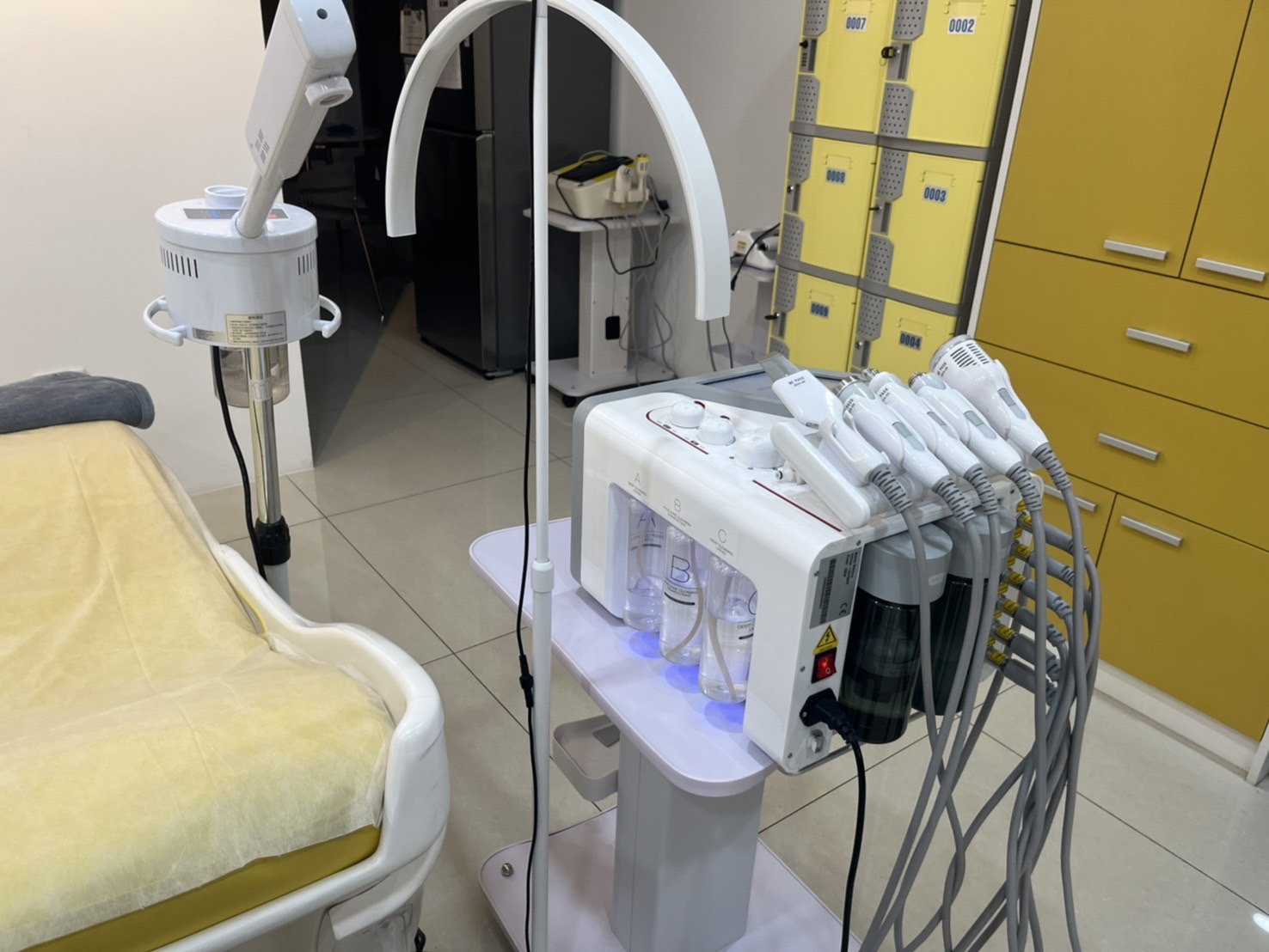 往裡面走,就會看到美容床以及儀器,整齊的排排站。