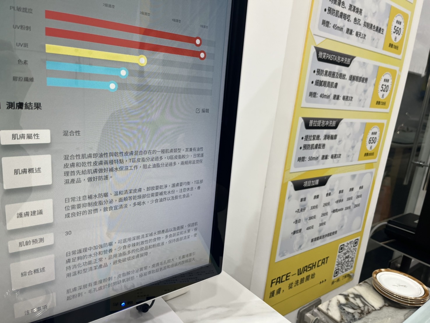 讓客人清楚自己的膚質、膚況,需要加強的地方,再來選擇適合的課程。
