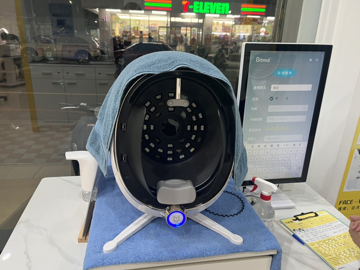 開始美容以前,會先幫客人做免費的膚質檢測。
