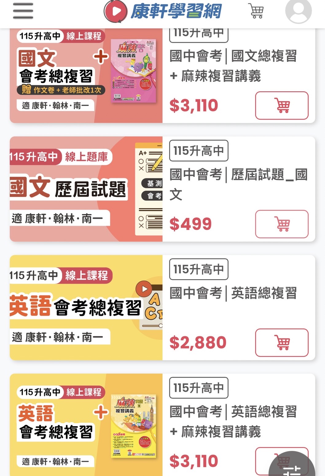 康軒有沒有針對國中會考,推出考前加強的課程。