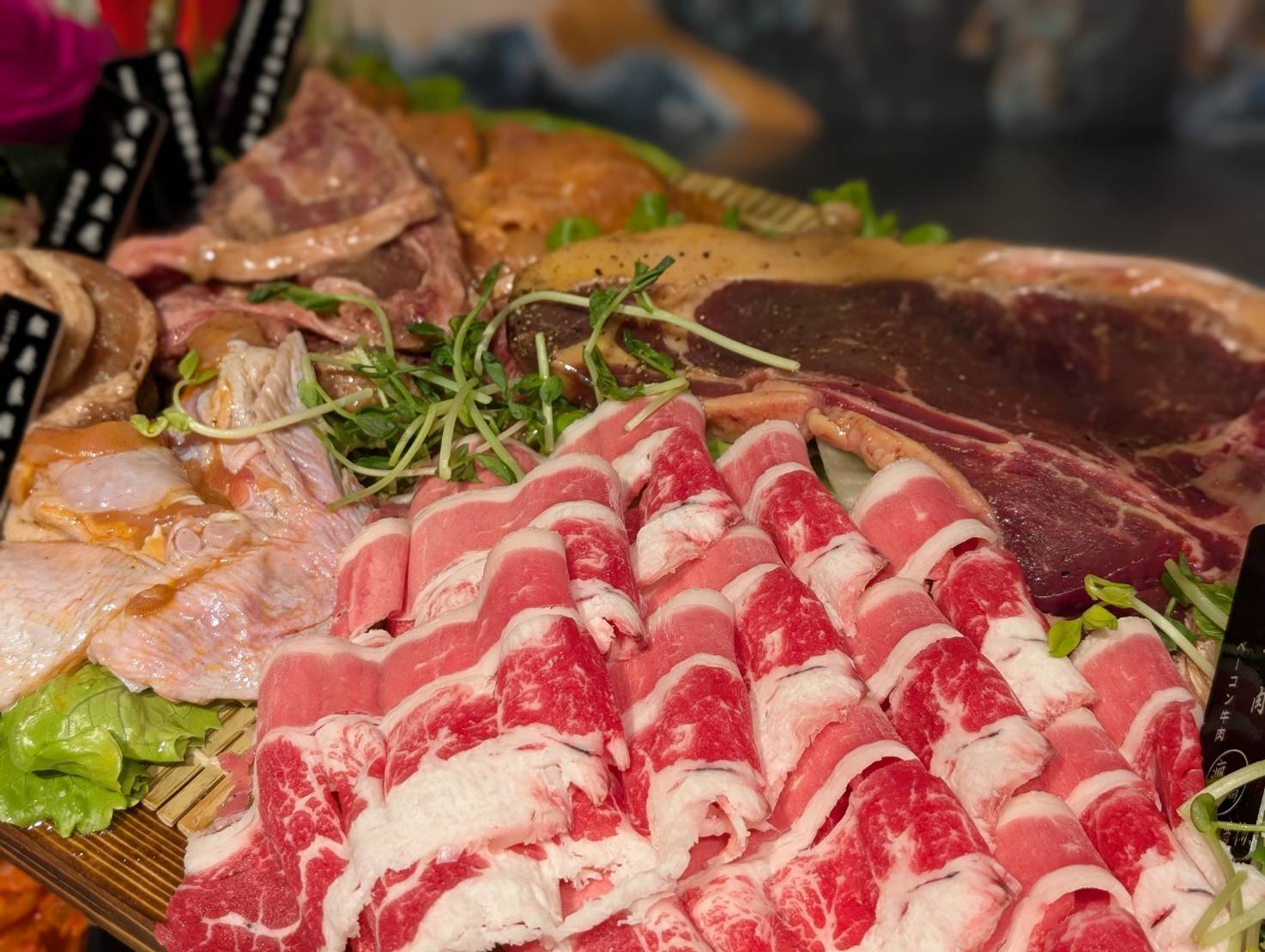 醬燒豬五花、新疆孜然無骨羊小排、韓式厚切銅板牛肉,