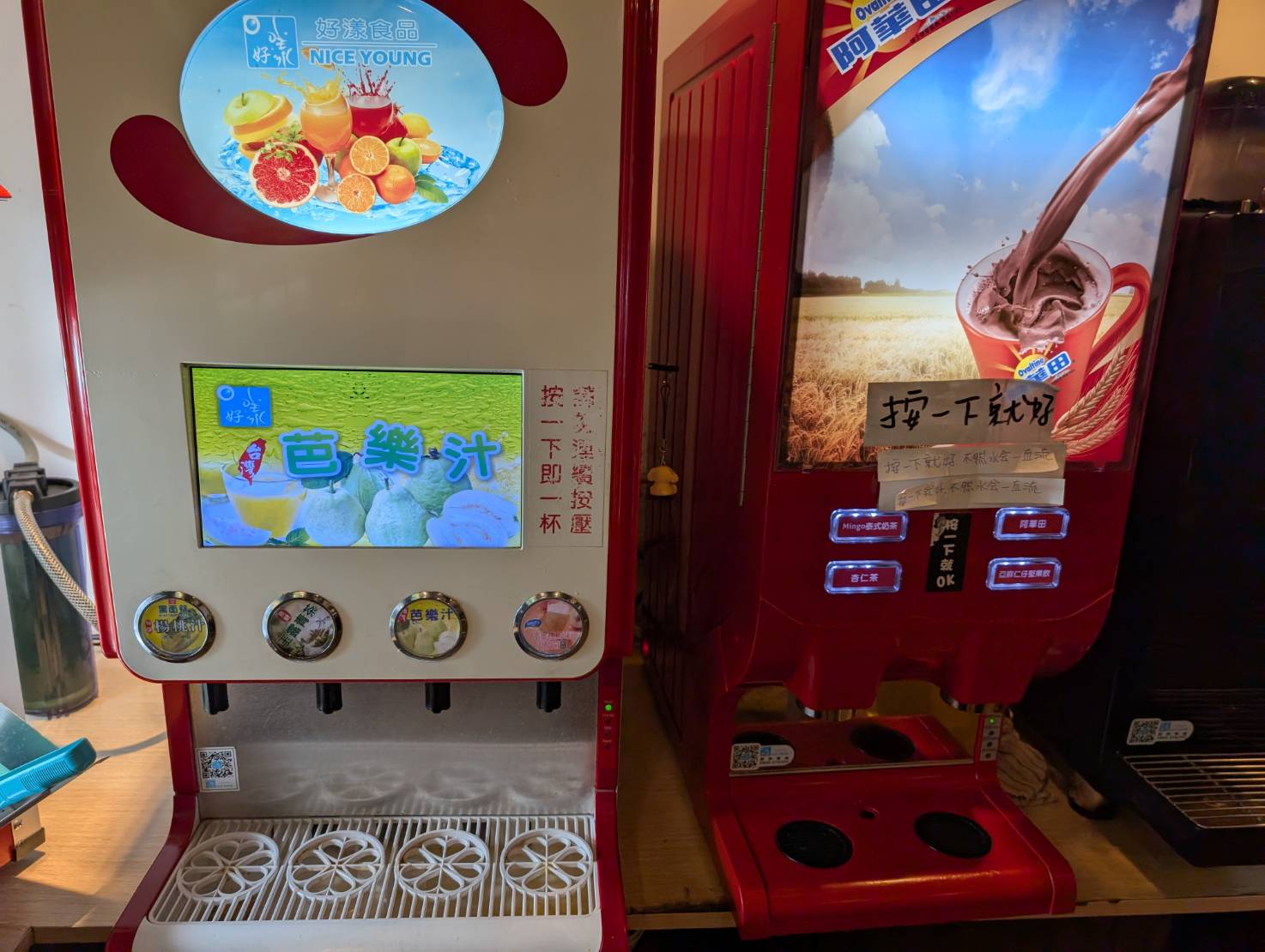 看要喝沒氣的果汁,還是有氣的汽水。