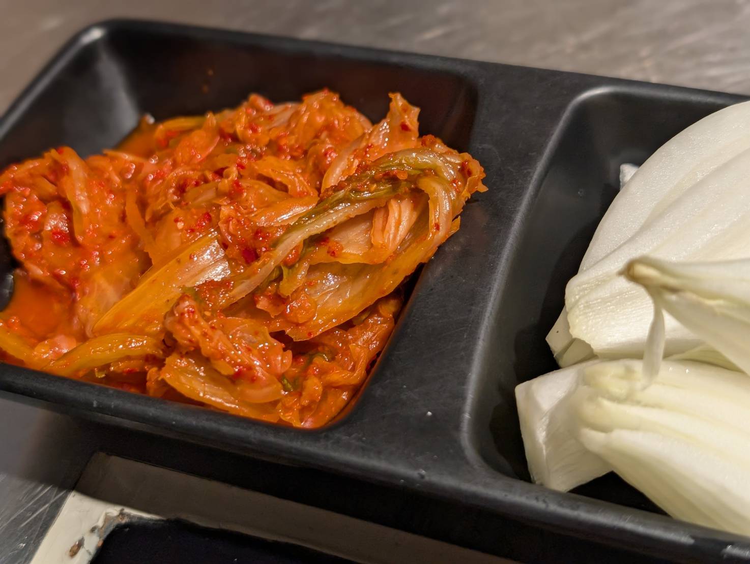 除了肉盤,還會送上泡菜、洋蔥與香菇,