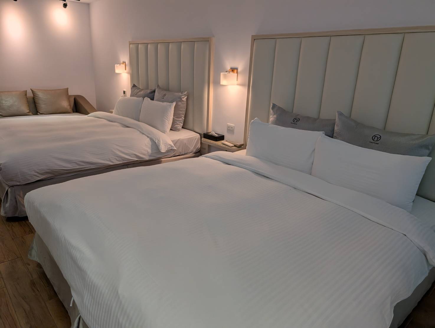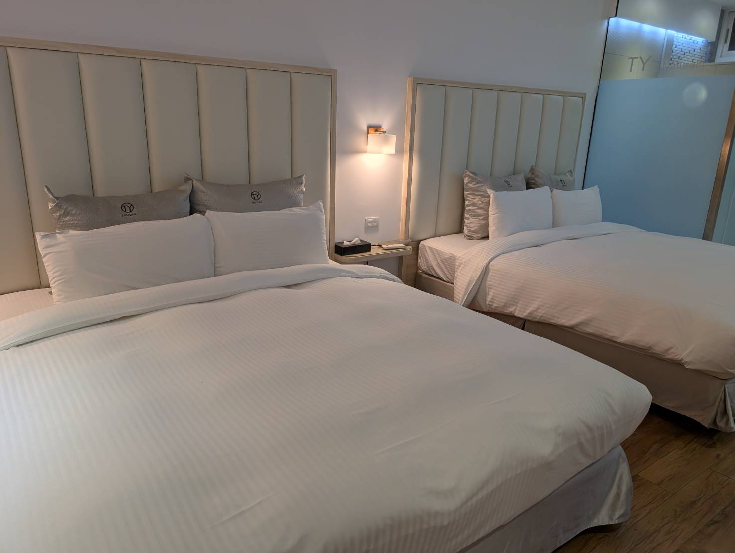 TY精品商務旅館,主要房型有豪華四人車庫房以及豪華雙人車庫房。