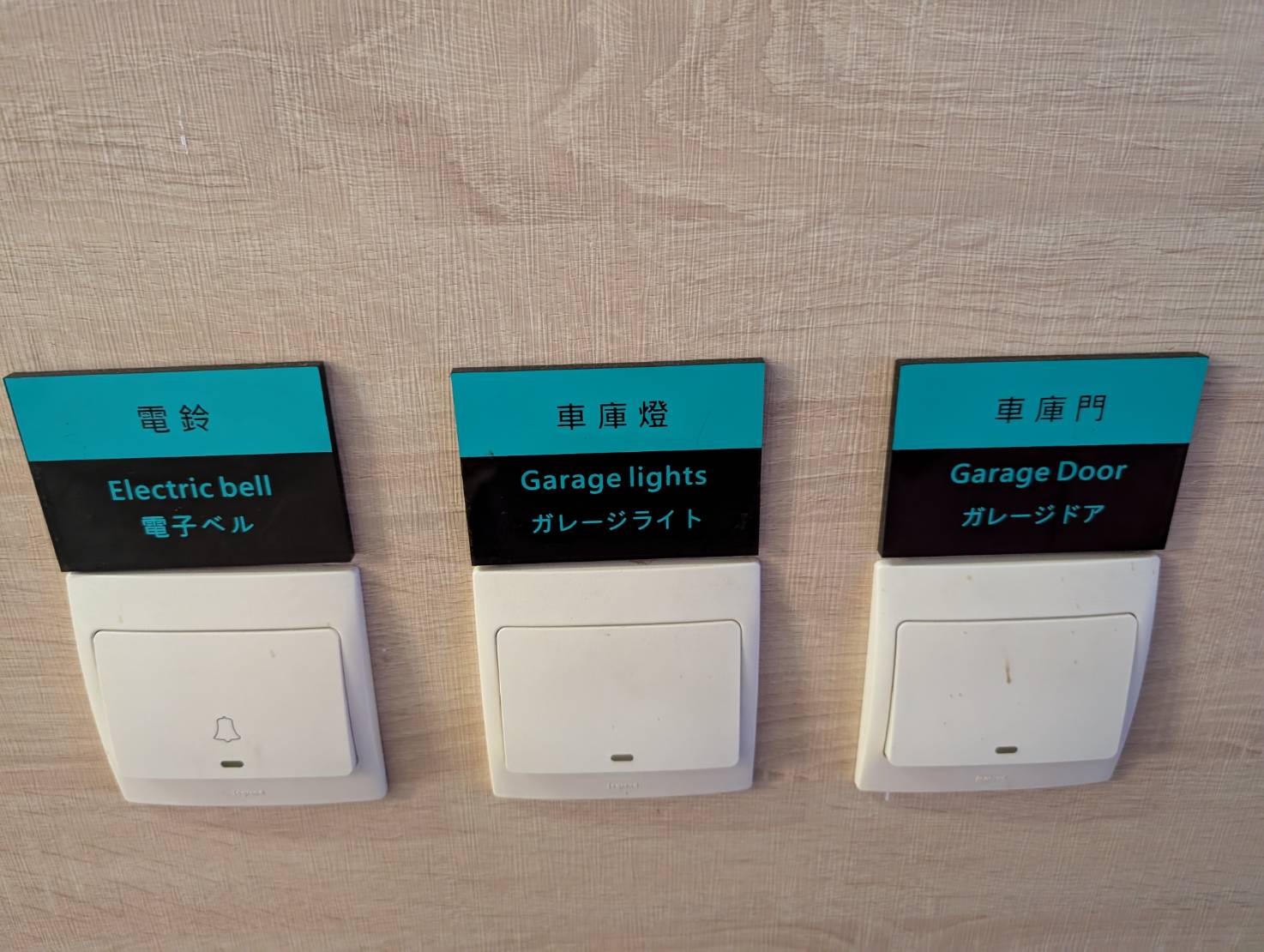 等林恰恰停好車的同時,我發現車庫牆壁上有三個按鈕,