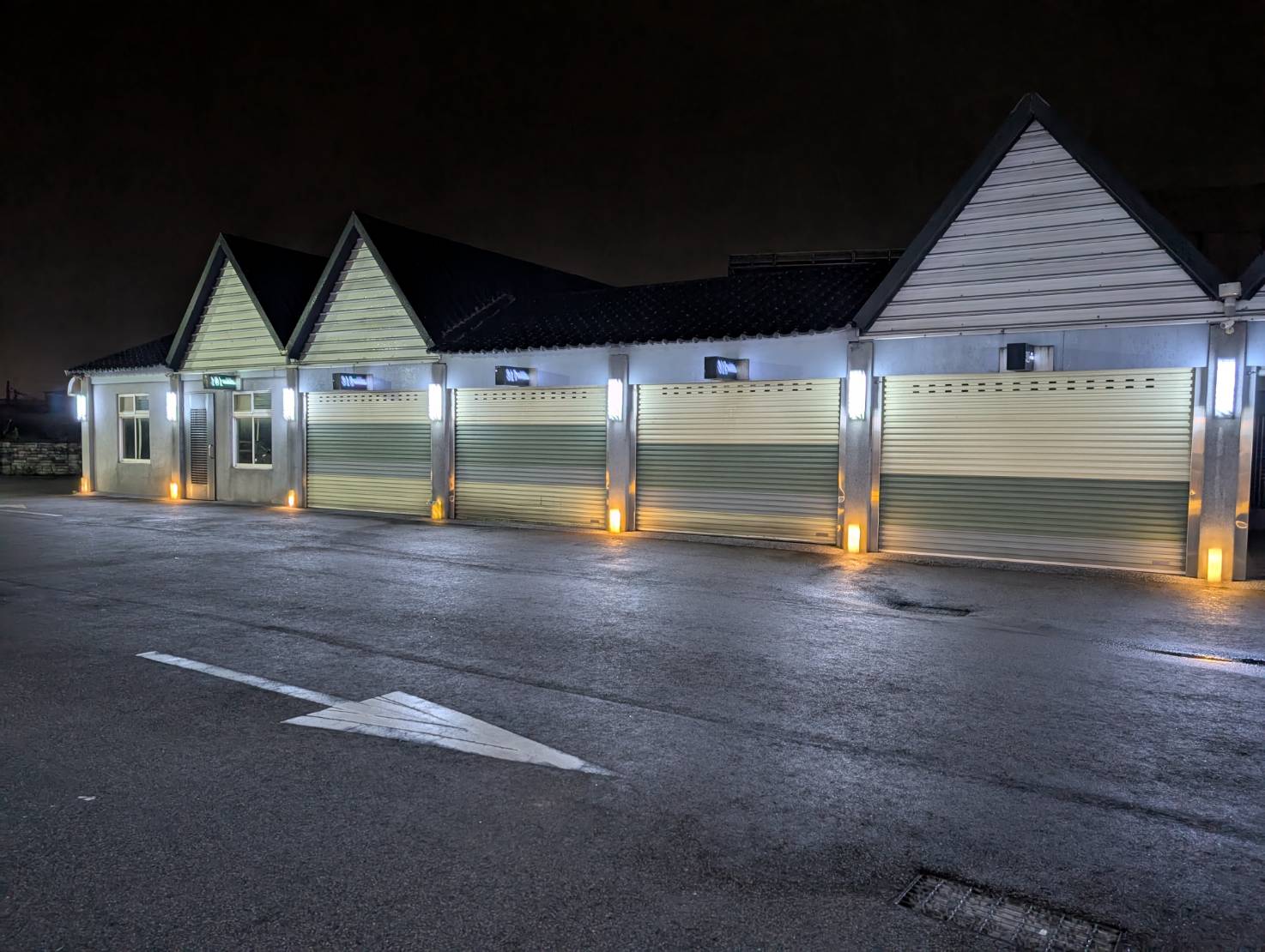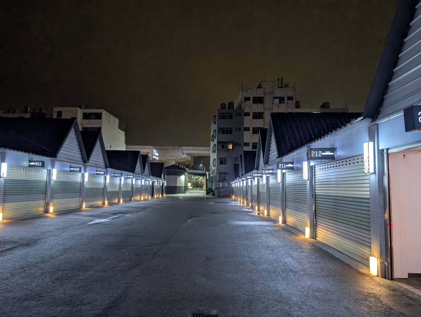 獨立的一間間房子,車庫跟房間就在鐵門裡面。