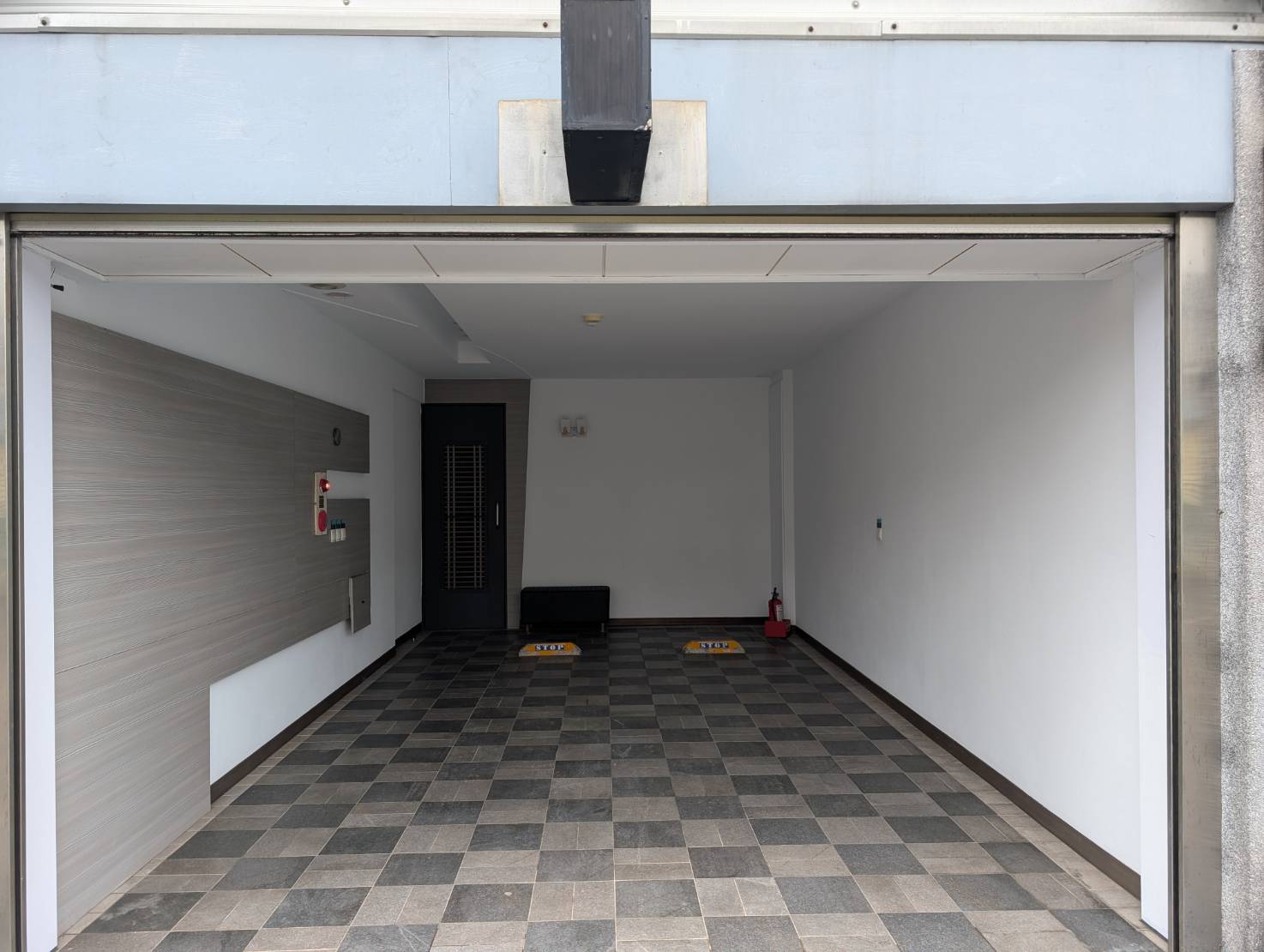 鐵捲門打開,車庫就是停一台車剛剛好的大小。
