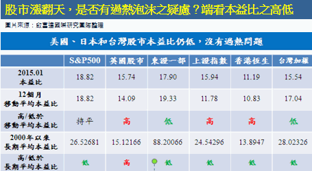 股市漲翻天,是否有過熱泡沫之疑慮?端看本益比之高低