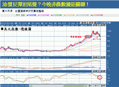 美元指數從技術線型來看,自3月中旬下跌,本週為第8週的下跌、週KD值來到50左右,日線下跌了第19天、日KD值小於20,股價跌至前波高低點,同時,紐約輕原油也反彈8週,日線圖部份,KD值有出現高檔死亡交叉向下的現象。今晚就業報告,若能符合市場預期,美元將有機會再次走強,那以美元計價的原油,是否反彈就近尾聲了?待今晚見分曉。