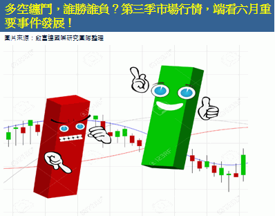 本週起股市將進入傳統上疲軟的 6 月,已有一連串挑戰等在前方,包括本週歐洲央行、英國央行、澳洲央行的貨幣政策會議及週五(6/5)美將公布5月份就業報告,OPEC(石油輸出國組織)年會(6/4-6/5),希臘與與國際債權方的協商進展、希臘必須償還IMF(國際貨幣基金)16億歐元(相當17.6億美元),另外, MSCI是否納入中國A股(6/9)。種種事件可能會強化美元漲勢、改變美國利率預期,導致歐元、非美貨幣的轉向,進而撼動股市的走向。