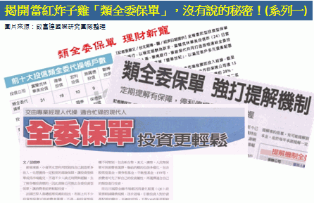 這樣看來,好像「類全委保單」的優點多,似乎是一個不錯的投資選項,可以納入購買的行列?真的是如此嗎?啟富達研究團隊特別對「類全委保單」做了深入的研究與探討,並將市面上各金融機構販售的「類全委保單」作了質化分析,將於本次課程完整陳述,並告知其未說出的秘密,敬待解析。至於,廣大讀者(非上課學員),也請敬待未來本刊後續一系列的刊載,待深入了解後,再決定購買與否,以免買了不該買的商品。