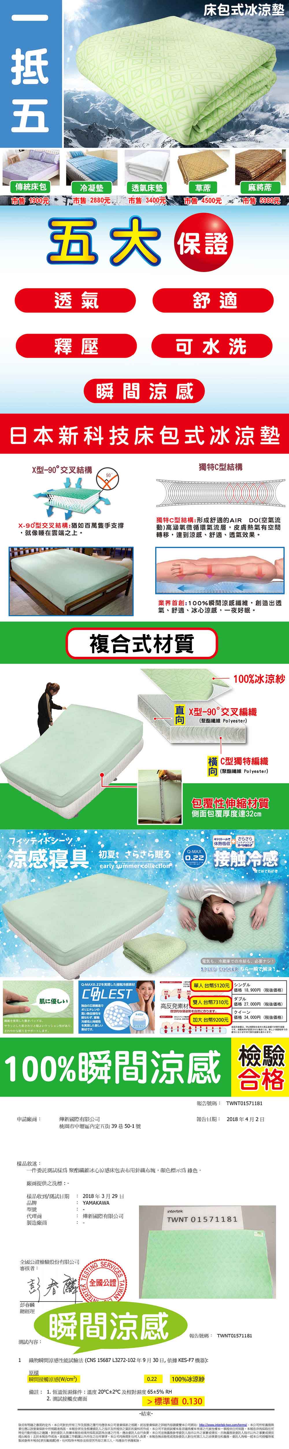5540565 日本新科技二合一床包式冰心涼感墊加,