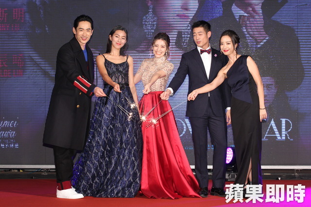 路斯明 (左起)、林辰唏、Lara、 榮忠豪及梁妍熙宣傳電影《明日之星》。 張桓誠攝