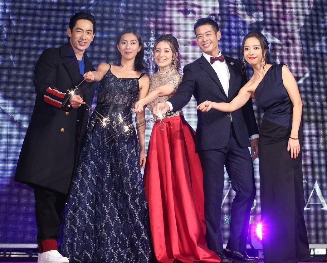路斯明(左起)、林辰唏、梁心頤、榮忠豪與導演梁妍熙,出席電影「明日之星」首映。記者林澔一/攝影