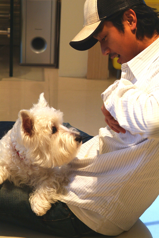 我喜歡把餅乾放在扒扒的鼻頭上,虐待牠個三分鐘才准牠吃,不用應付小嬰兒嚎啕吵了要喝奶,還有當扒扒亂小便,我便罰牠趴著牆面站三分鐘面壁思過,哪還要苦心地幫牠換紙尿褲,再者,在扒扒心中我永遠是牠的主人,牠全心全意愛我,不會長大後爲了女朋友跟我吵架,儘管身邊的人都說自己的小孩有多可愛,回到家,我才覺得我的扒扒最最最可愛!