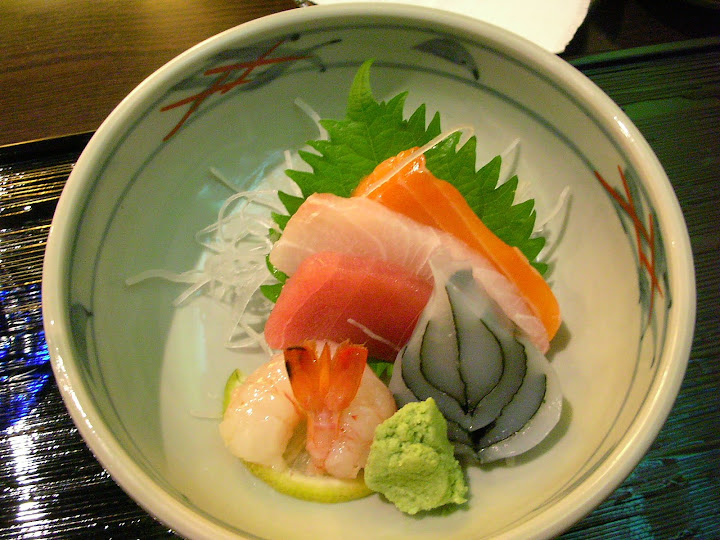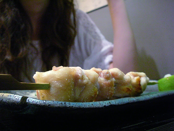 北鼻不敢吃生魚片~所以她的換成烤雞肉串~
