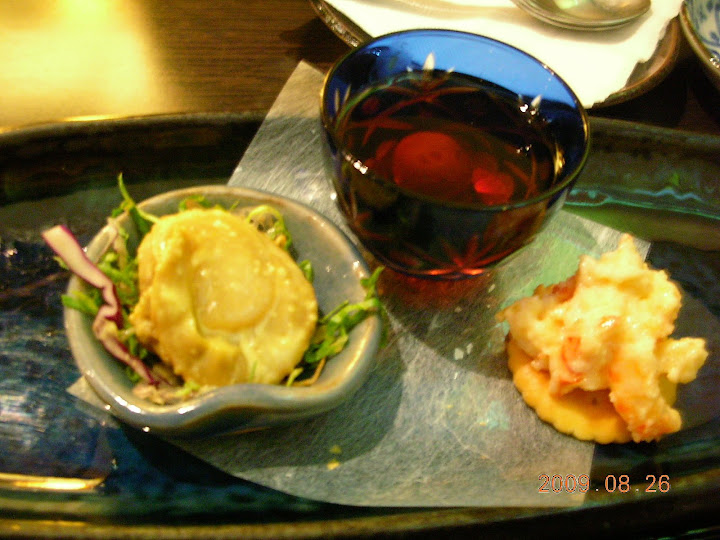左起:咖哩干貝 梅酒 龍蝦莎拉~