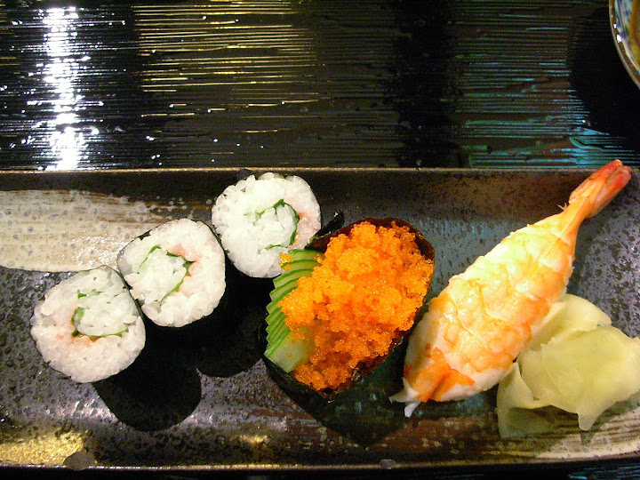 第八道是握壽司~三個紫蘇梅子捲~一個蝦卵軍艦捲~一個蝦肉壽司~