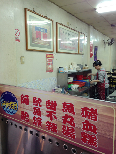 ▲店裡賣的是淡水阿給、魷魚羹...還有豬血糕。