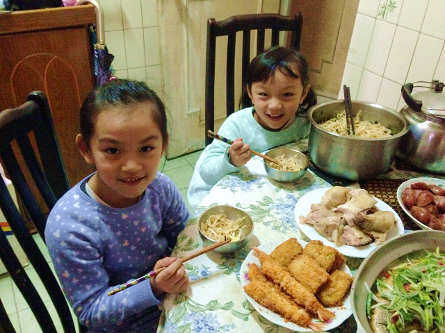 農曆初二是出嫁女兒回娘家的時刻,查德因為兩女兒平常都在丈母娘家,所以就不急著跟大家"愧修",回娘家時刻就安排在初五,每年這一天丈母娘會準備一桌豐盛,形式上地迎接女兒回娘家。丈母娘的手藝不是蓋的,聽車輪妹說以前丈母娘曾經擺過麵攤,能出來做生意想必一定有三兩下,所以每年我們都很期待回娘家這天丈母娘的上菜秀!