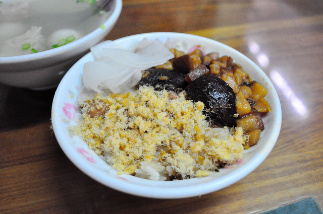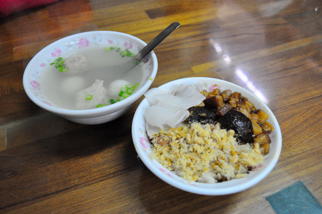台南到處都有賣米糕,為何在地人力推這家米糕,一定要來嚐嚐!我們點了香菇米糕跟綜合湯來試試,蝦米一碗米糕才40元,綜合湯才20元,這兒的物價跟台北真是天壤之別啊@@...請務必繼續保持下去(跪),米糕上除了一般台南米糕常見的魚鬆之外,還加上肉燥、香菇、花生跟幾片白切醃蘿蔔,看起來相當豐富!