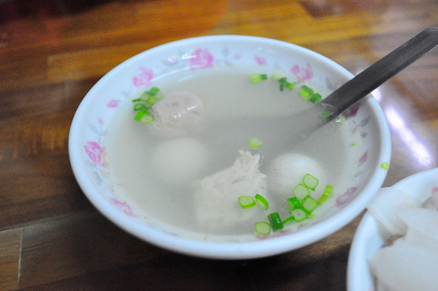 綜合湯裡有三種口味的手工丸子,吃起來Q彈有勁,吃完米糕配碗綜合湯這樣肚子的飽度剛剛好。在這巷子裡的市場中隱藏了如此美味的庶民料理,若不是在地人介紹,我們還真難發現它呢!來台南可別忘了過來嚐嚐國宴級的庶民美食~榮盛米糕。