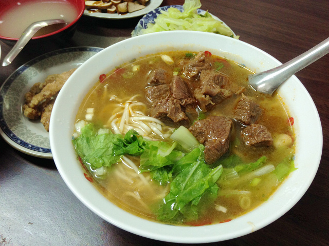 ▲我們店了川味牛肉麵、排骨麵、燙青菜跟滷味。