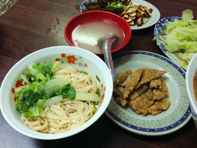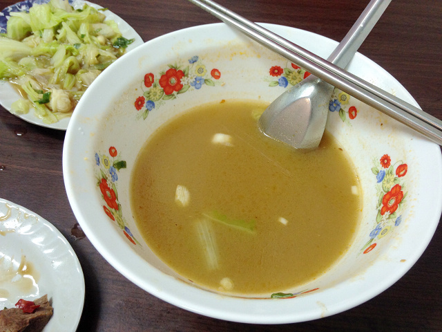 車輪的排骨麵基本上就是乾麵附上一塊排骨,說不上什麼特別,反而是燙青菜...將高麗菜燙的非常爛,然後淋上香油與一點點醬油,這做法跟車輪妹相同,很有家常味!