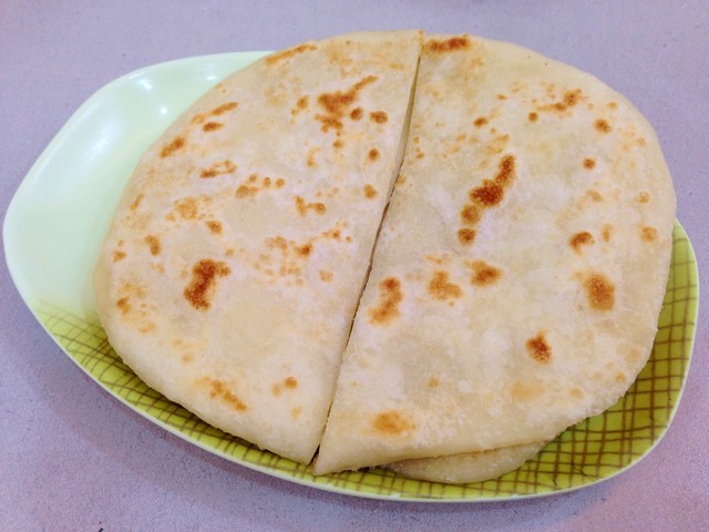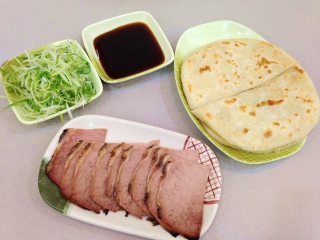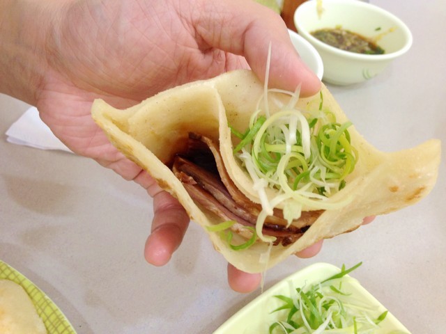 雖然查德不怕酸,但對於東北口味的酸菜白肉鍋並不偏好,所以沒有太多的意見。但是這燻肉大餅可就厲害啦!說到這餅皮...查德相當偏好這種麵粉做煎過或烤過的皮,舉凡烙餅、蔥油餅、蛋餅...這些餅皮查德都超愛!燻肉大餅的餅皮竟然裡頭有兩層,一層包燻肉一層包蔥絲,燻肉沾點特製醬料夾入大餅裡,在夾上蔥絲就完成燻肉大餅囉!
