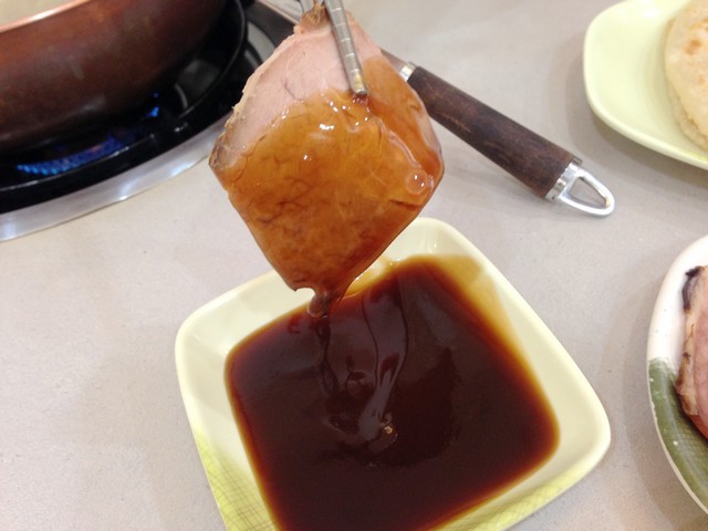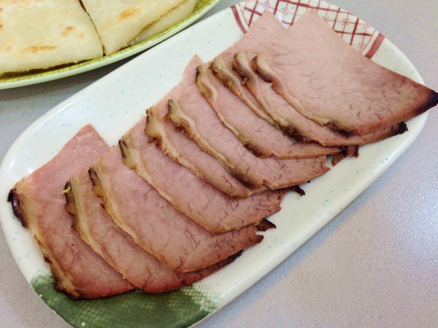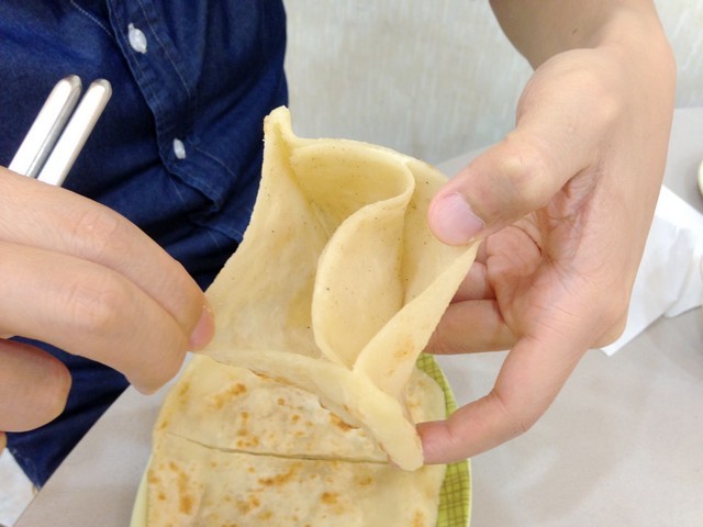 一口咬下麵皮超Q軟,還帶著股麵粉的香氣,而且麵皮超有嚼勁啦~偶好愛!吃到燻肉與特製甜醬+蔥絲的合體,味道又不一樣了,燻肉肉質算嫩有股說不出的燻香味,再加上甜甜的醬料跟蔥絲的微嗆味,哇~真是好吃啊!後來剩下一塊餅皮,查德二話不說直接吃不夾燻肉,單純品嚐麵皮的香味與Q勁~讚!