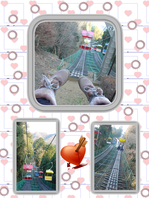 下山的路就好走多了,來到搭乘下山纜車的地方,原本以為會需要排隊,但沒想到不僅不用排隊,而且上纜車的速度超快,chaimama根本來不及反應,已經被工作人員請上車,與其說是車?不如說是一張簡單的雙人椅,坐上這張雙人椅也是我惡夢的開始....