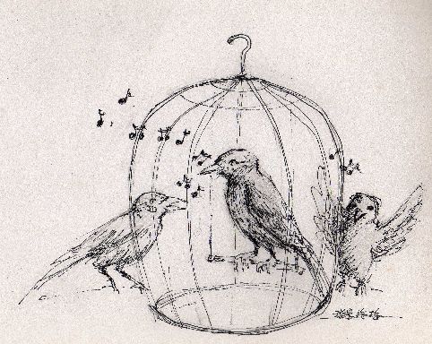 過了好一陣子,那八哥突然不再亂叫了,牠一律拉著長音叫“嘰......”接著二聲“扣囉,扣囉”.這是什麼怪音?不知八哥為何對此情有獨鐘,牠的叫聲突然間固定了,“嘰扣囉”終於成為牠往後唯一的叫聲.至於“嘰扣囉”的由來,終於在某天,無意間被我發現;我和劉媽媽是轉角的鄰居,每天回家,必經過劉媽媽家.有一回,我騎腳踏車經過劉媽媽門前,習慣性地煞車再轉彎,隨後便聽到裡頭的八哥叫著“嘰......扣囉,扣囉..”,這才恍然大悟,原來八哥學的正是我的腳踏車的煞車聲.