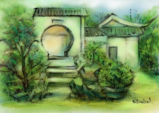 蘇州的園林雖小,但在古代造園家匠心獨運的巧思下,創造出富有藝術氣息且多樣的景致,在園中行走,或見“庭院深深深幾許”,或見“柳暗花明又一村”,至於那些形式各異、圖案精致的花窗,那些如錦緞般的在腳下遷伸不盡的鋪石,及許許多多不經意發現的驚奇,都讓人回味無窮.