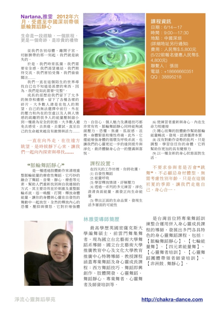 脈輪舞蹈靜心四日工作坊(六月深圳)