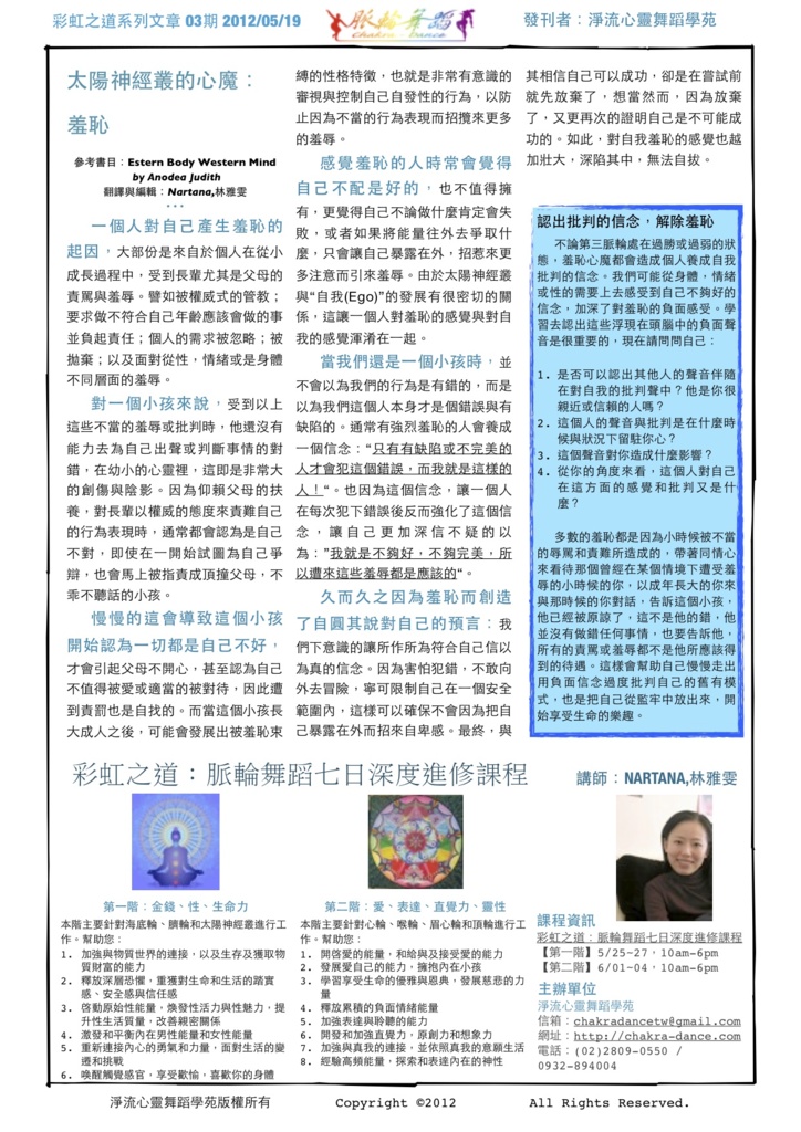 彩虹之道:脈輪舞蹈七日深度進修課程 (5/25 確定開課,尚有2個名額)