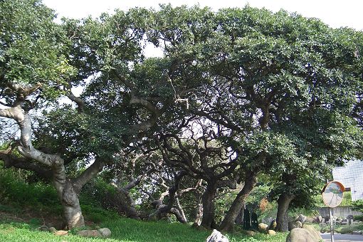 由於海風強勁,許多老樹長年被海風吹襲,樹幹、樹枝都呈現曲折生長,變化多端。這也是分辨朴樹的特點之一。