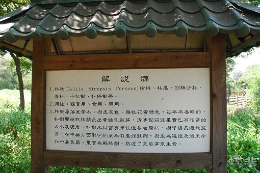 為了讓遊客了解朴樹的生態,縣府將朴樹較集中地區規劃為朴樹公園,並設立解說牌,詳細介紹朴樹林。